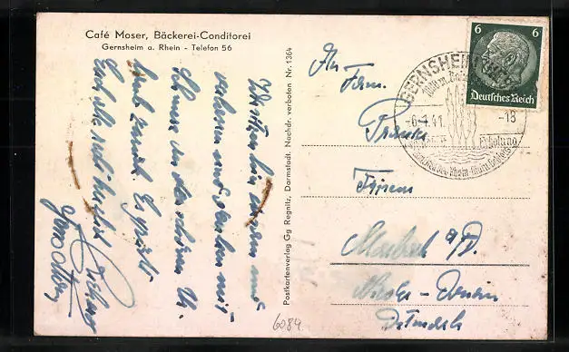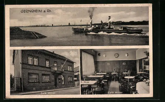 AK Gernsheim a. Rh., Cafe Moser, Rheindampfer