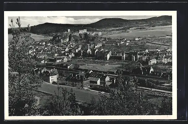 AK Gerolstein /Eifel, Ortsansicht mit der Burgruine