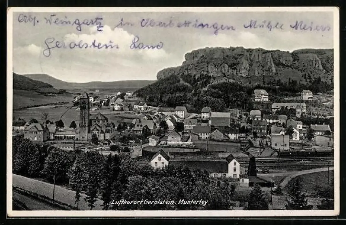 AK Gerolstein, Munterley, Ortsansicht mit Felsen