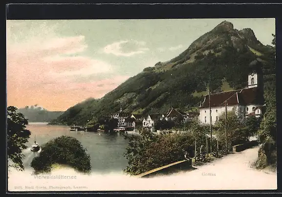 AK Gersau, Ortspartie mit Kirche