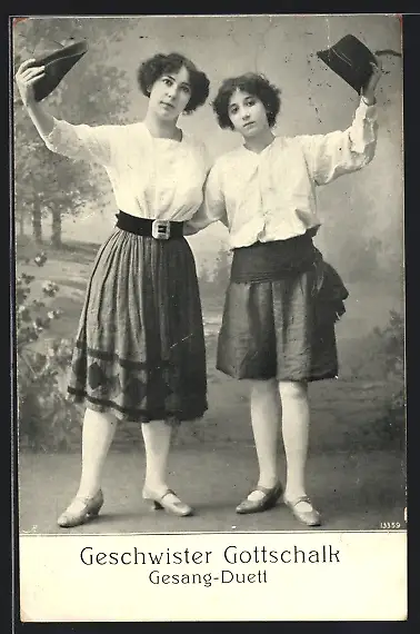 AK Gesangs-Duett Geschwister Gottschalk mit Hüten in der Hand, Musiker