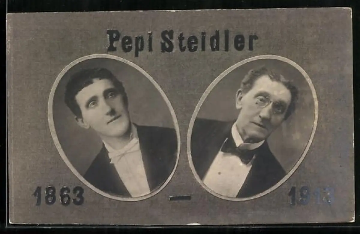 AK Gesangskomiker Pepi Steidler, Porträts in den Jahren 1863 und 1918
