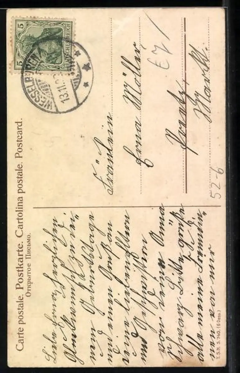 alte Ansichtskarte, gelaufen, rückseitig Oberflächenschaden, guter Zustand