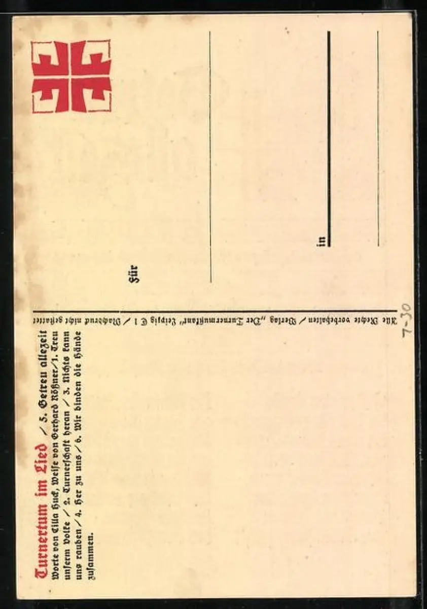 AK Getreu allezeit, Porträt Turnvater Jahns, Turnertum im Lied