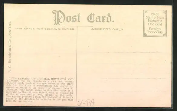 AK Gettysburg, PA, Statues of Generals Reynolds and Buford