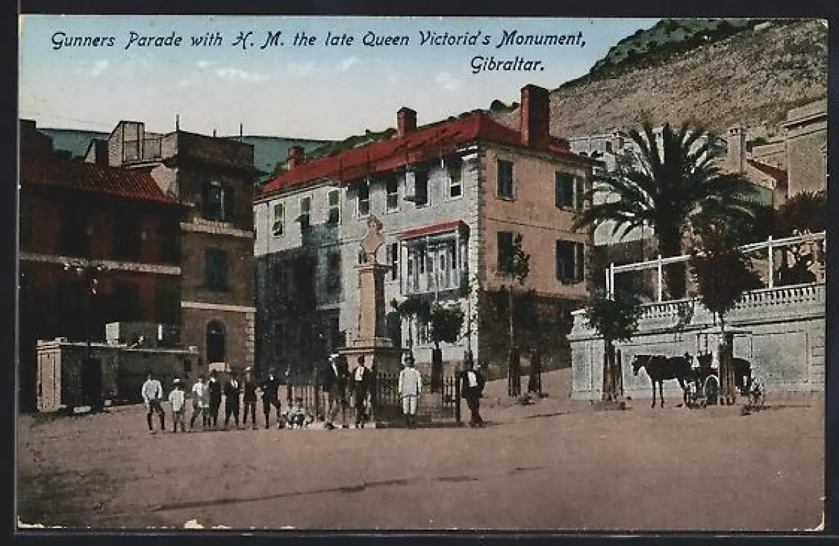 AK Gibraltar, Gunners Parade with H.M. the lateQueens Victoria`s Monument