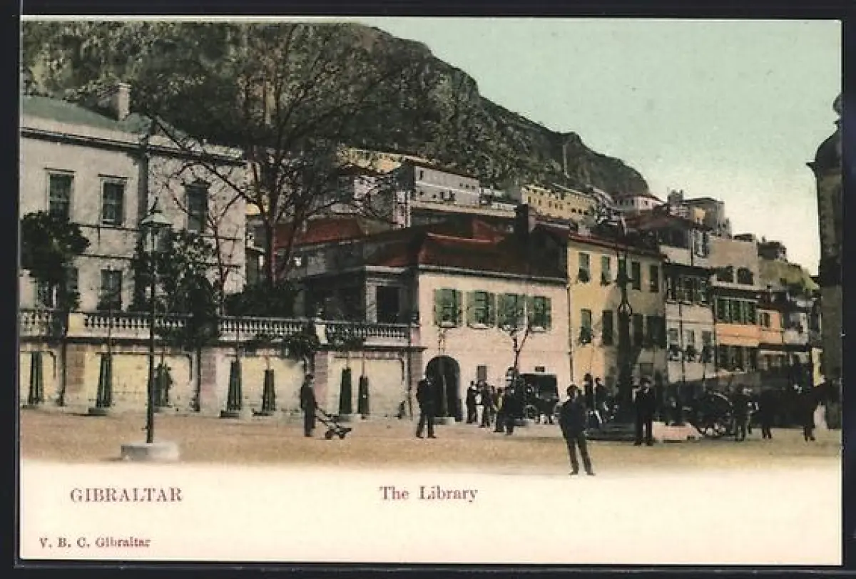 AK Gibraltar, The Library, Strasse mit Bibliothek