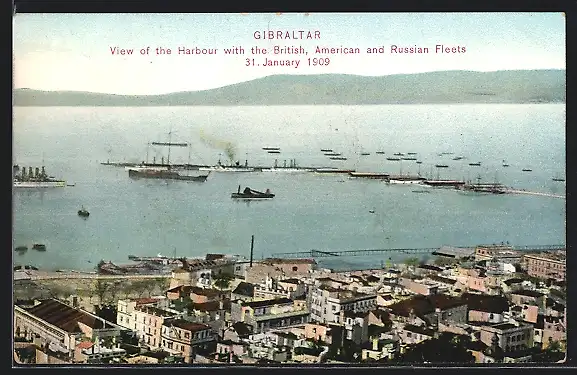 AK Gibraltar, View of the Harbour with the British, American and Russian Fleets 1909