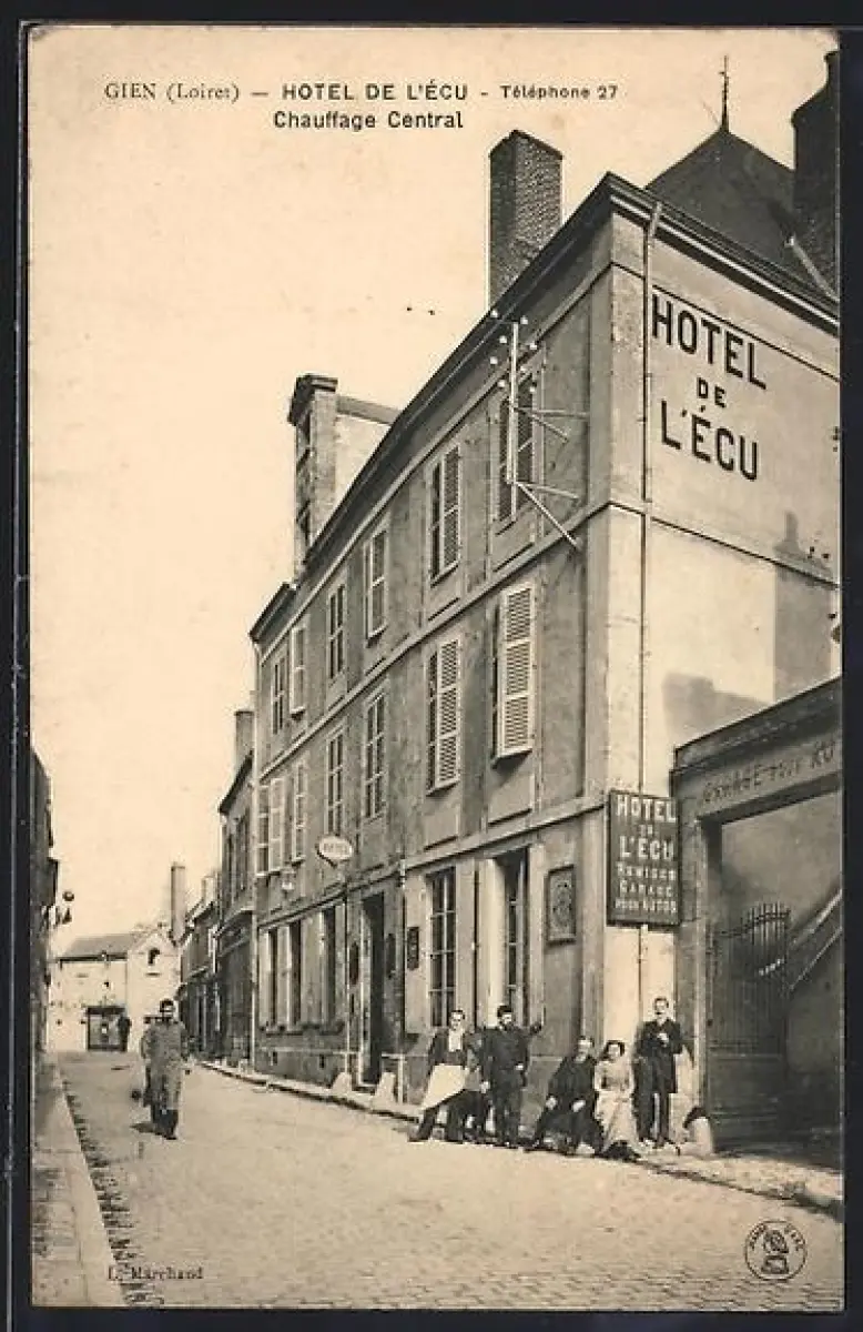 AK Gien /Loire, Hôtel de l`Écu avec passants dans la rue