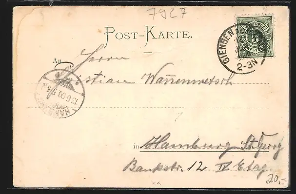 alte Ansichtskarte, gelaufen 1900, Bugspur li. oben, kleiner Einriss li. oben, guter Zustand