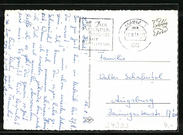 alte Ansichtskarte, gelaufen 1964, guter Zustand