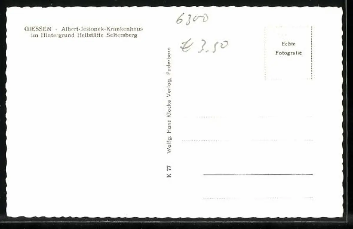 AK Giessen, Albert-Jesionek-Krankenhaus mit Strassenpartie, Im Hintergrund Heilstätte Seltersberg