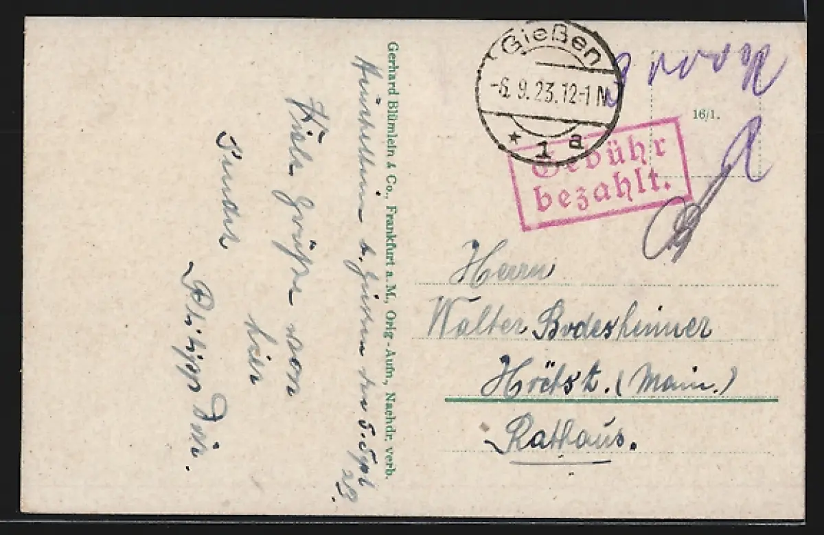 alte Ansichtskarte, gelaufen 1923, guter Zustand