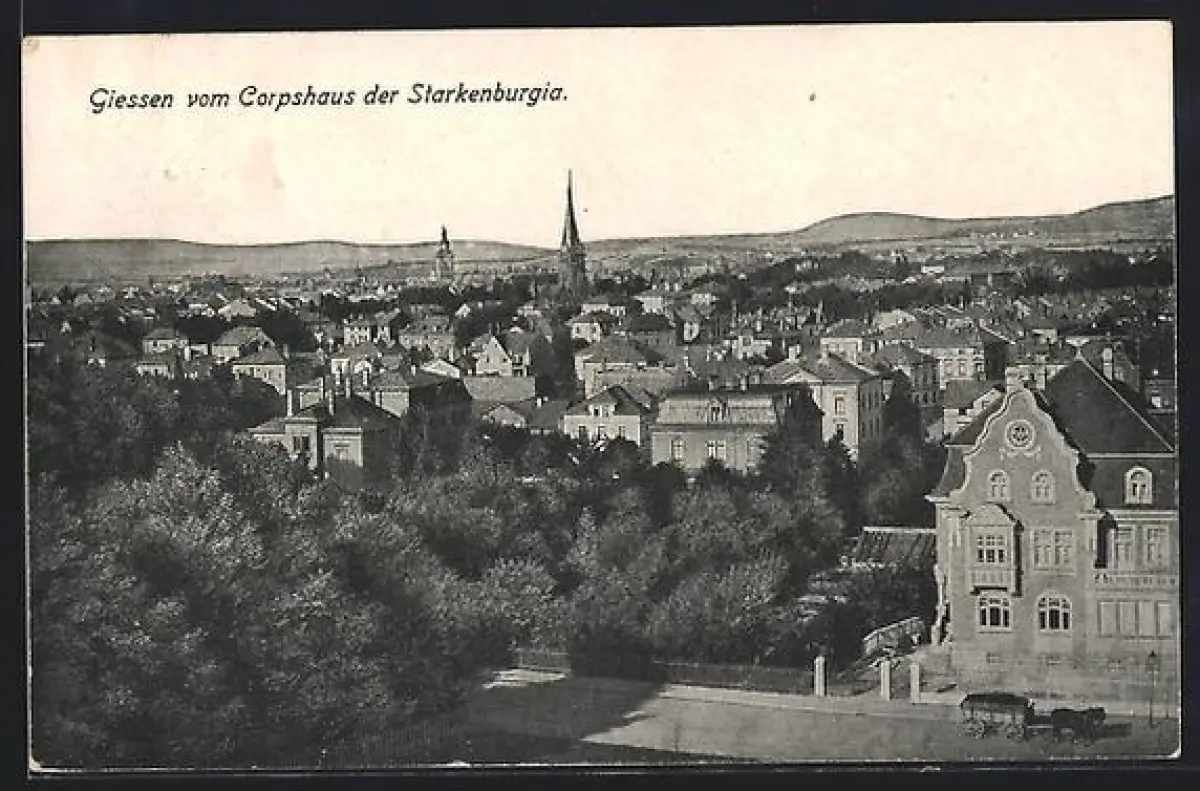 AK Giessen, Blick vom Corpshaus der Starkenburgia auf Stadtpanorama