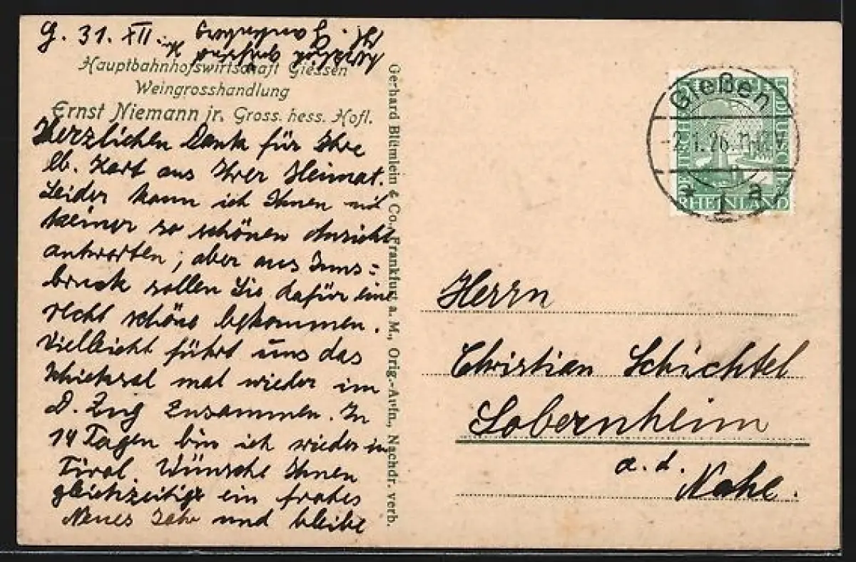 alte Ansichtskarte, gelaufen 1926, guter Zustand