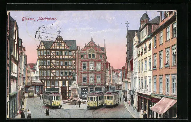 AK Giessen, Marktplatz, Strassenbahn