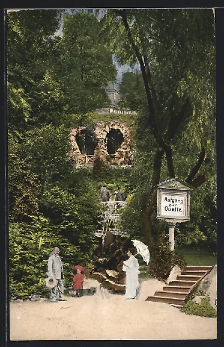 AK Giesshübl Sauerbrunn b. Karlsbad, Aufgang zur Quelle