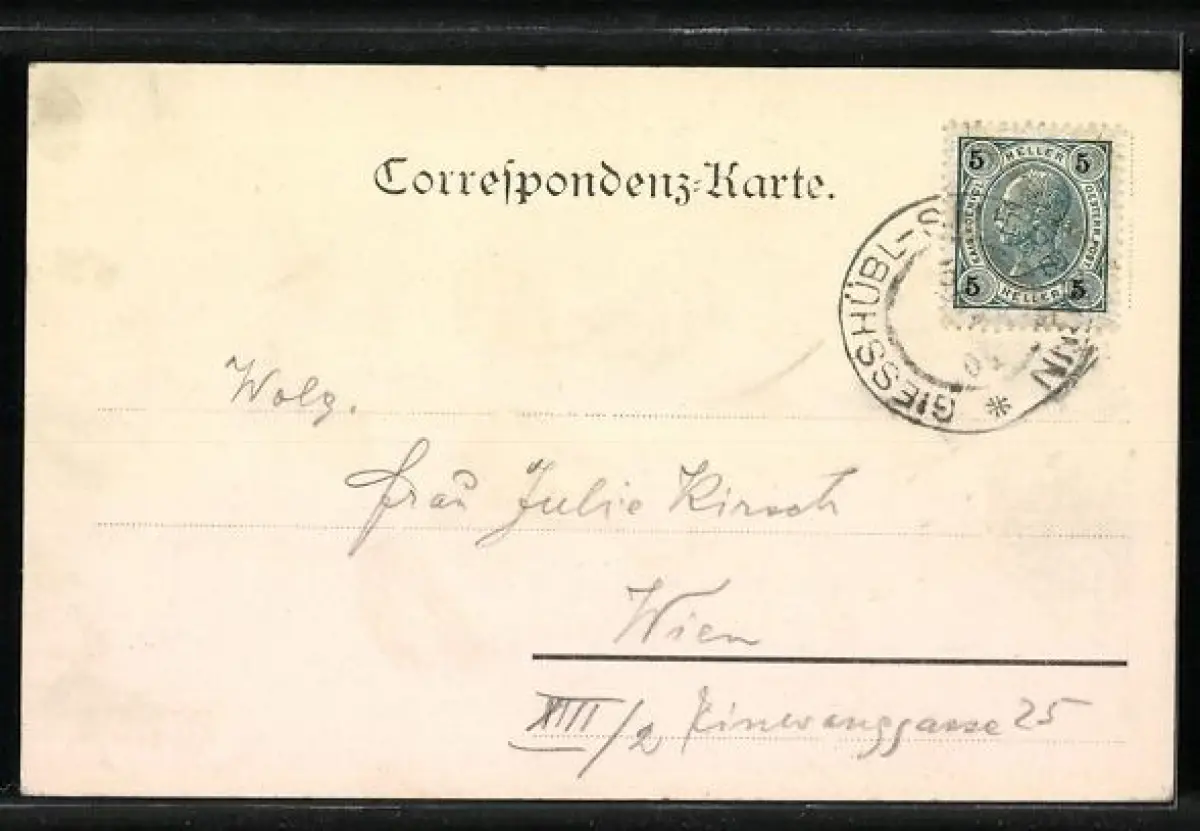 gelaufen 1904, Eckknick oben li., guter Zustand