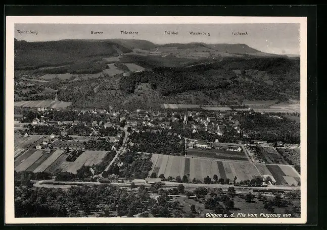 AK Gingen a. d. Fils, Ortsansicht aus der Vogelschau