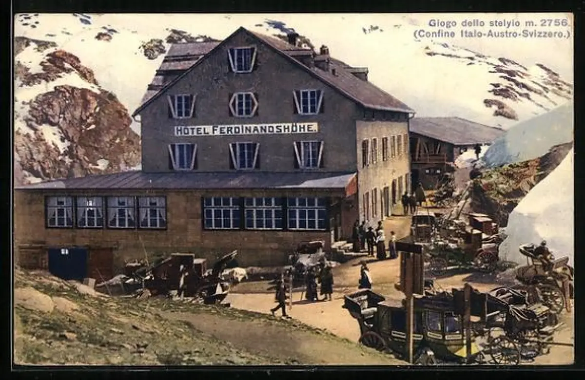 AK Giogo dello Stelvio, Hotel Ferdinandshöhe, Confine Italo-Austro-Svizzero