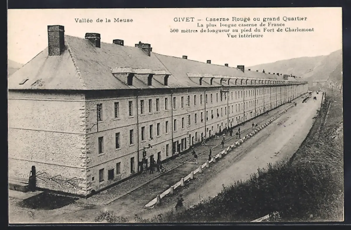AK Givet, Caserne Rougé ou grand Quartier, la plus longue caserne de France, vue intérieure