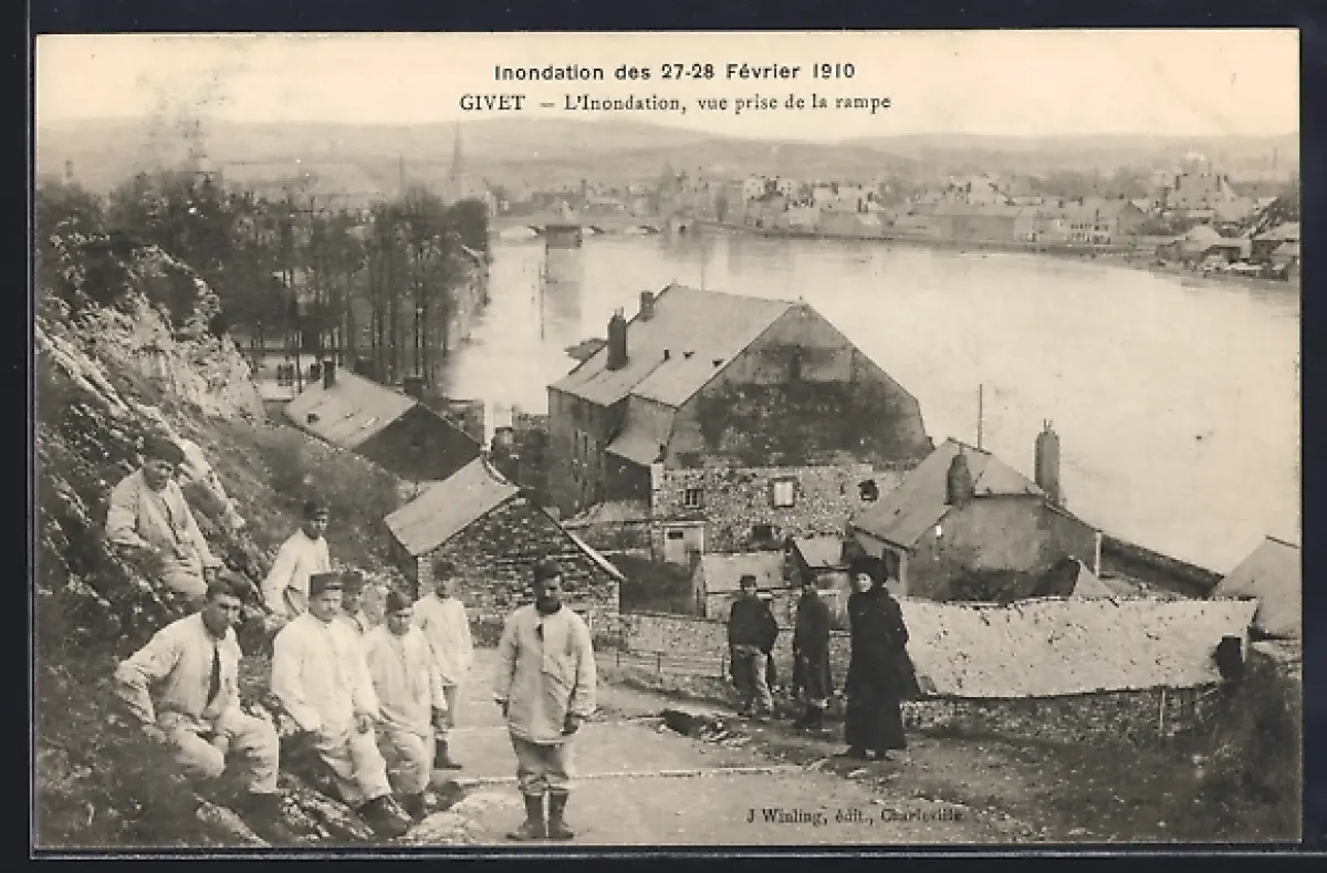 AK Givet, L`Inondation, vue prise de la rampe