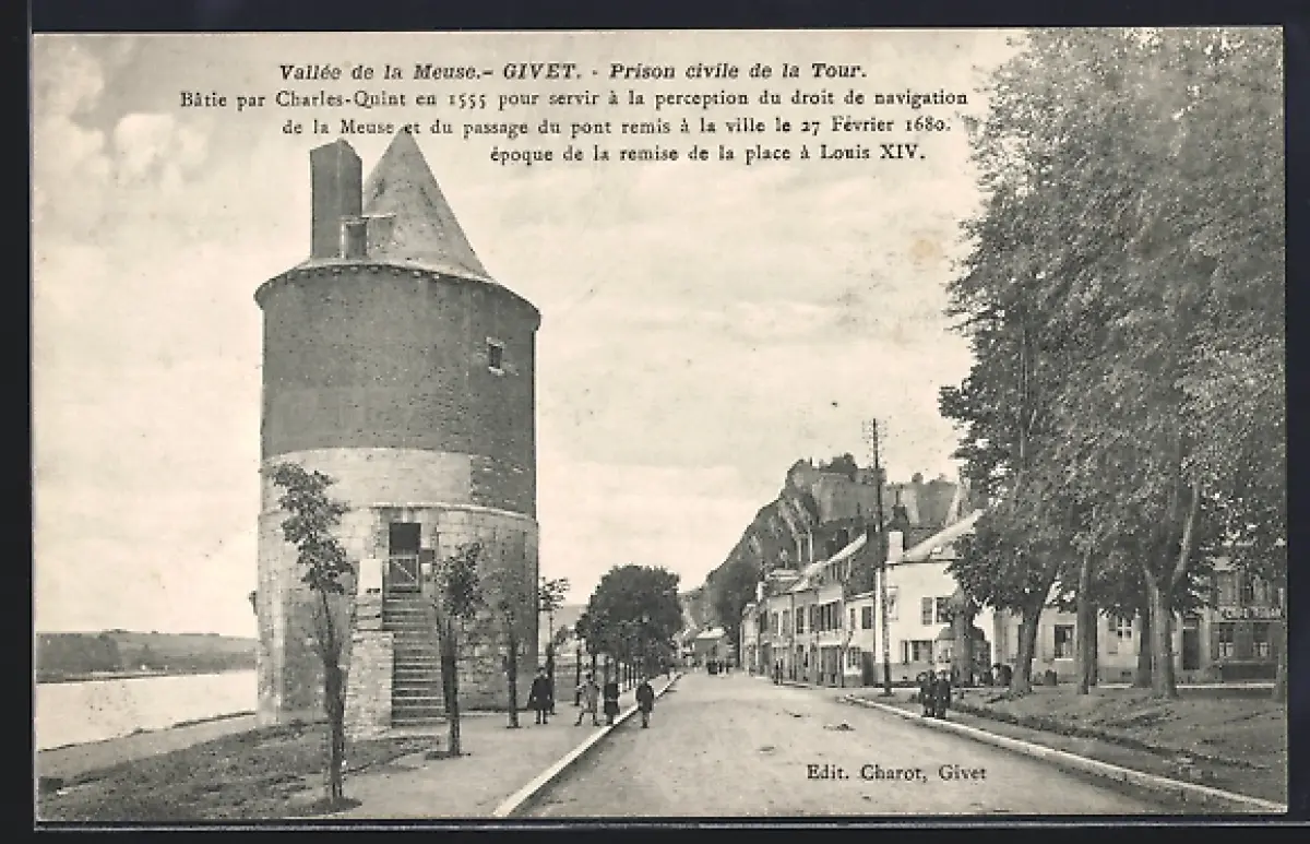 AK Givet, Prison civile de la Tour et rue bordant la Meuse
