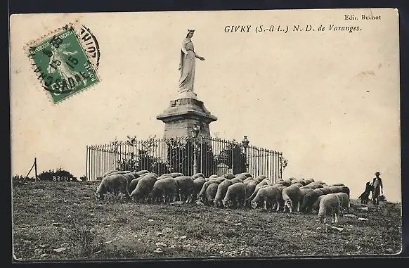 AK Givry, N.D. de Varanges avec troupeau de moutons et berger