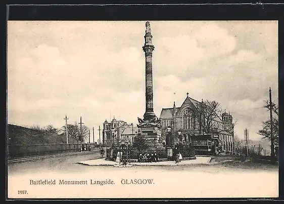 AK Glasgow, Battlefield Monument Langside, Tramway, Strassenbahn