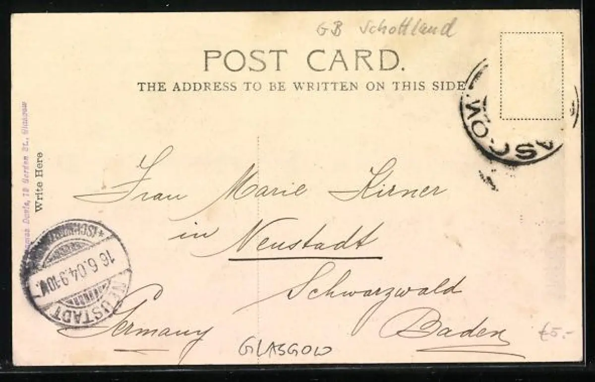 alte Ansichtskarte, gelaufen 1904, Briefmarke entfernt, Stempelspur, guter Zustand