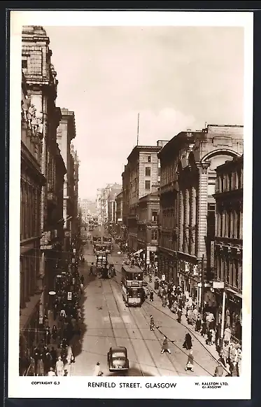 AK Glasgow, Renfield Street mit Strassenbahn und Passanten