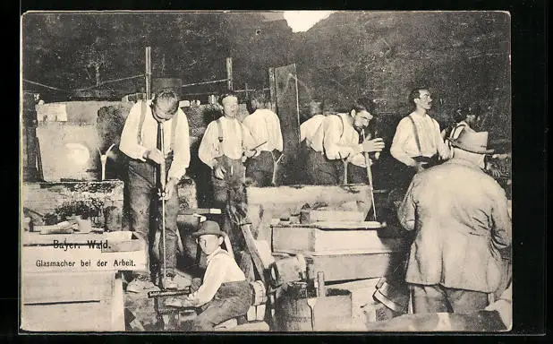 AK Glasherstellung im Bayrischen Wald, Glasmacher bei der Arbeit