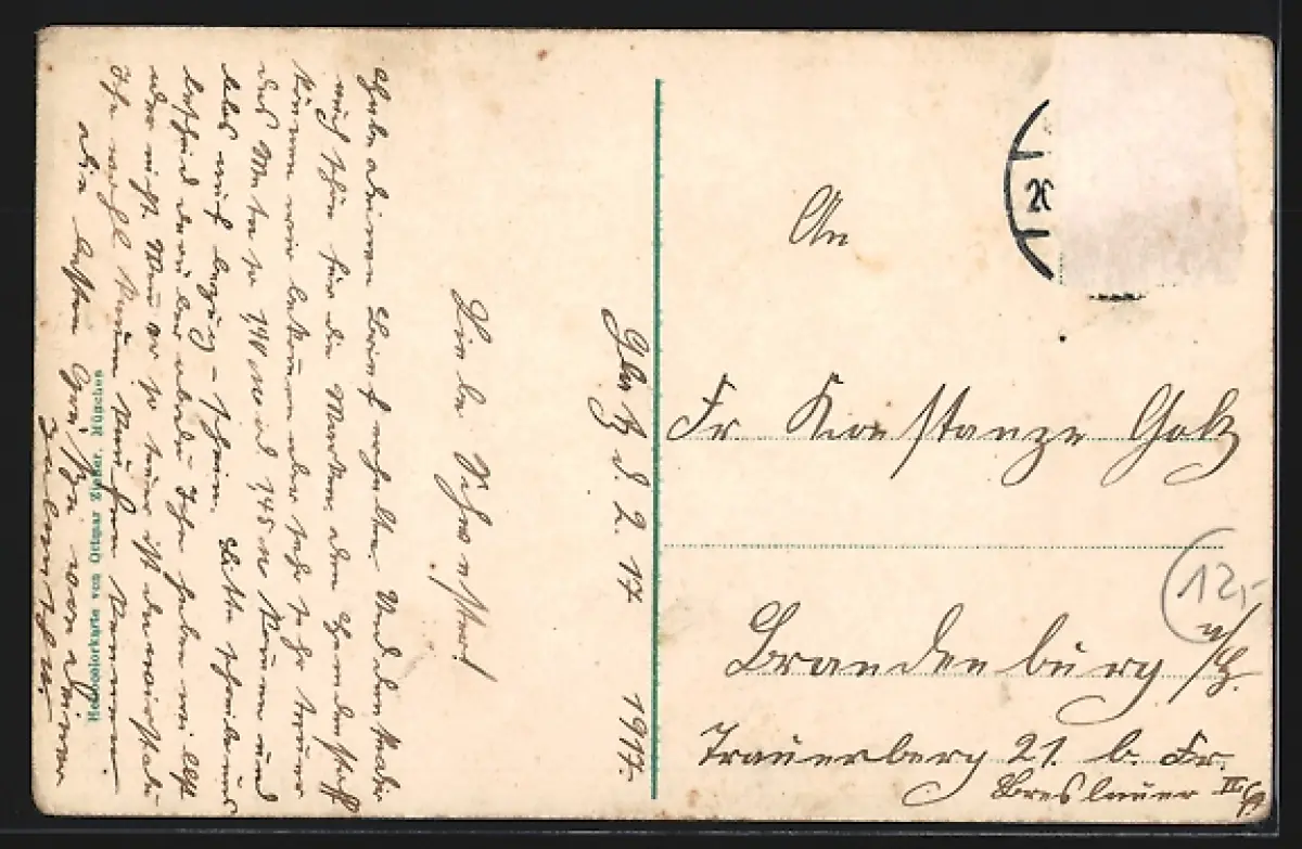 alte Ansichtskarte, gelaufen, Briefmarke entfernt, rückseitig Oberflächenschaden, sonst guter Zustand