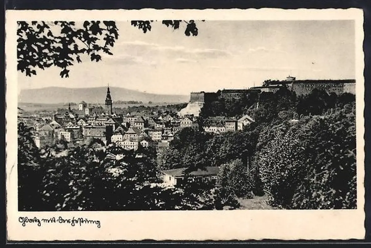 AK Glatz, Über den Dächern der Stadt mit Kirchturm