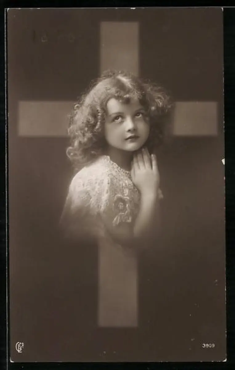 AK Glaube, Betendes Mädchen am Kreuz