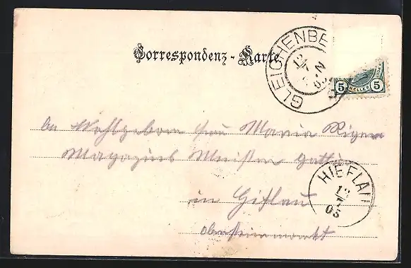 alte Ansichtskarte, gelaufen 1905, Briefmarke entfernt, guter Zustand