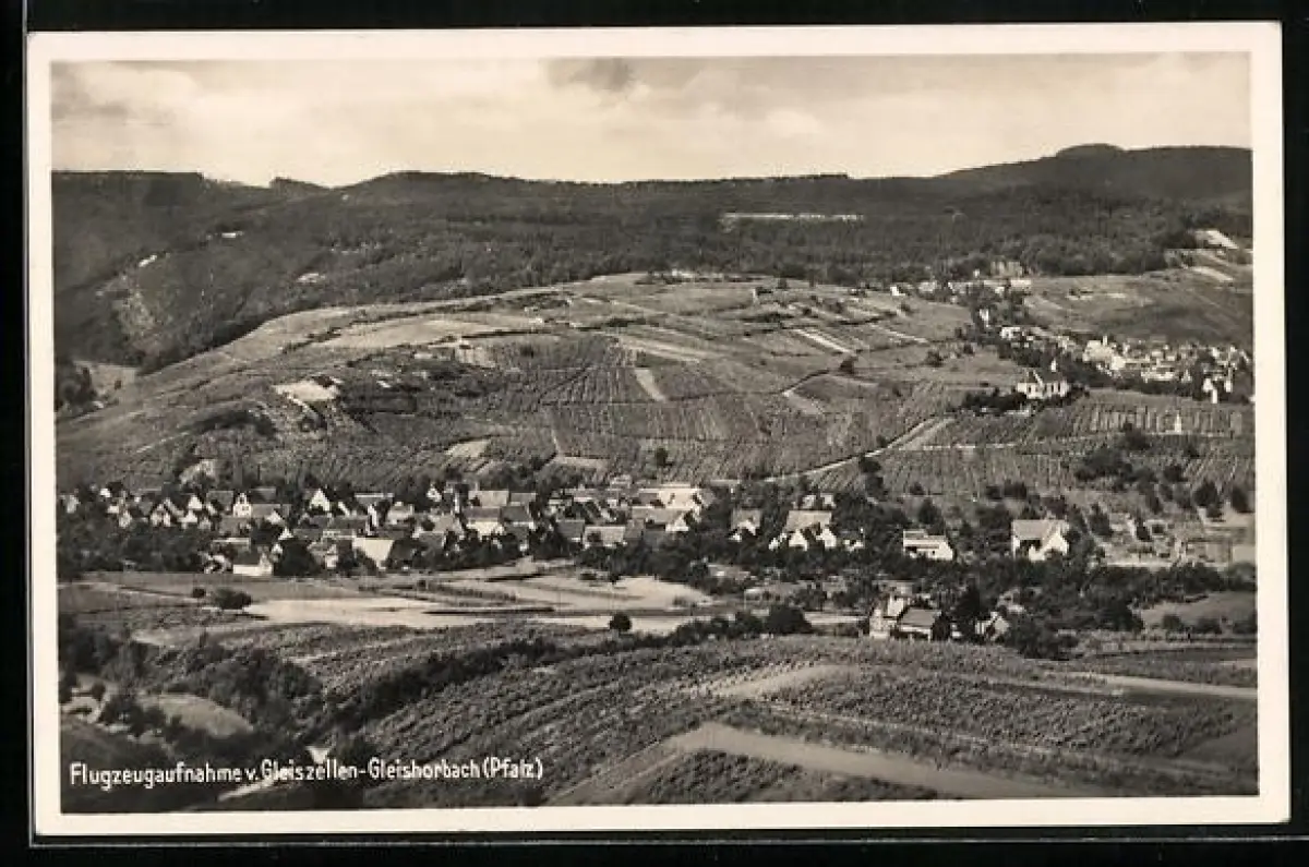 AK Gleiszellen-Gleishorbach /Pfalz, Flugzeugaufnahme, Weinberge, Ortsansicht