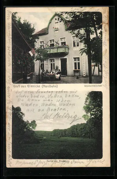AK Glienicke /Nordbahn, Gasthaus Waldschlösschen, Partie am Kindelsee