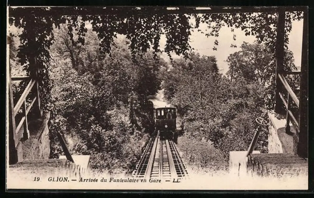 AK Glion, Arrivée du Funiculaire en Gare, Bergbahn