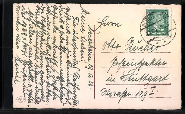 alte Ansichtskarte, gelaufen, Stempelspur, guter Zustand