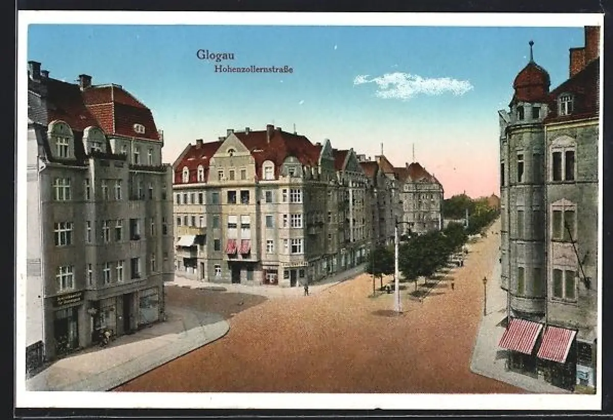AK Glogau, Hohenzollernstrasse mit Geschäften