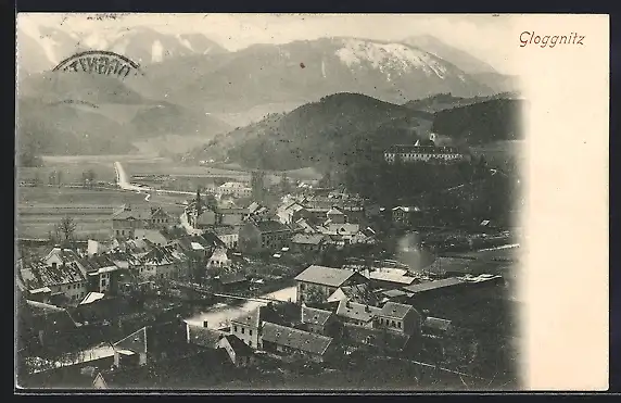 AK Gloggnitz, Teilansicht mit Landstrasse und Bergpanorama
