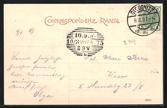 alte Ansichtskarte, gelaufen 1907, Stempelspur, guter Zustand