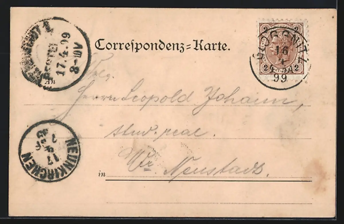 alte Ansichtskarte, gelaufen 1899, guter Zustand