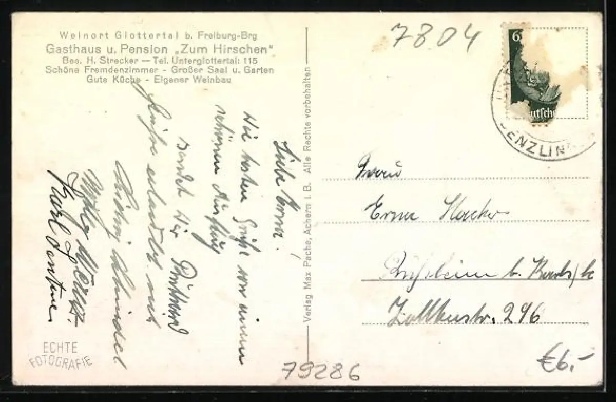 AK Glottertal /Baden, Ortsansicht, Gasthaus-Pension Zum Hirschen H. Strecker