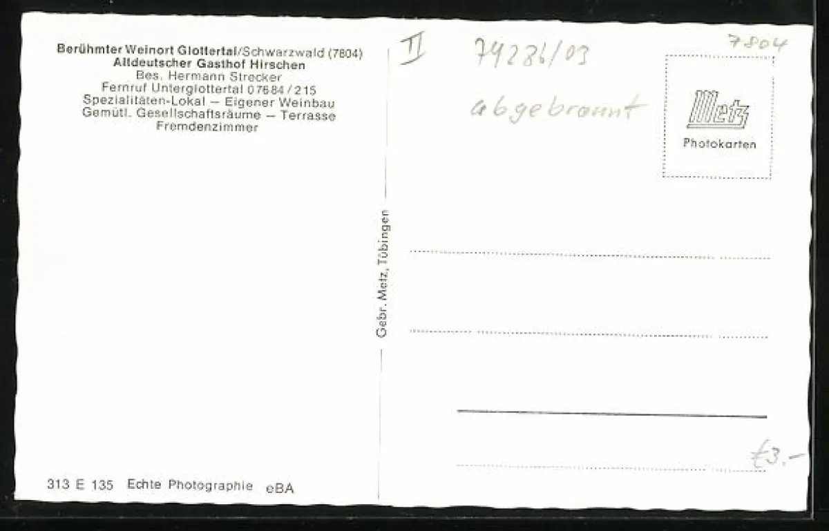 AK Glottertal /Schwarzwald, Alldeutscher Gasthof Hirschen, Inh. Hermann Strecker, Terrasse