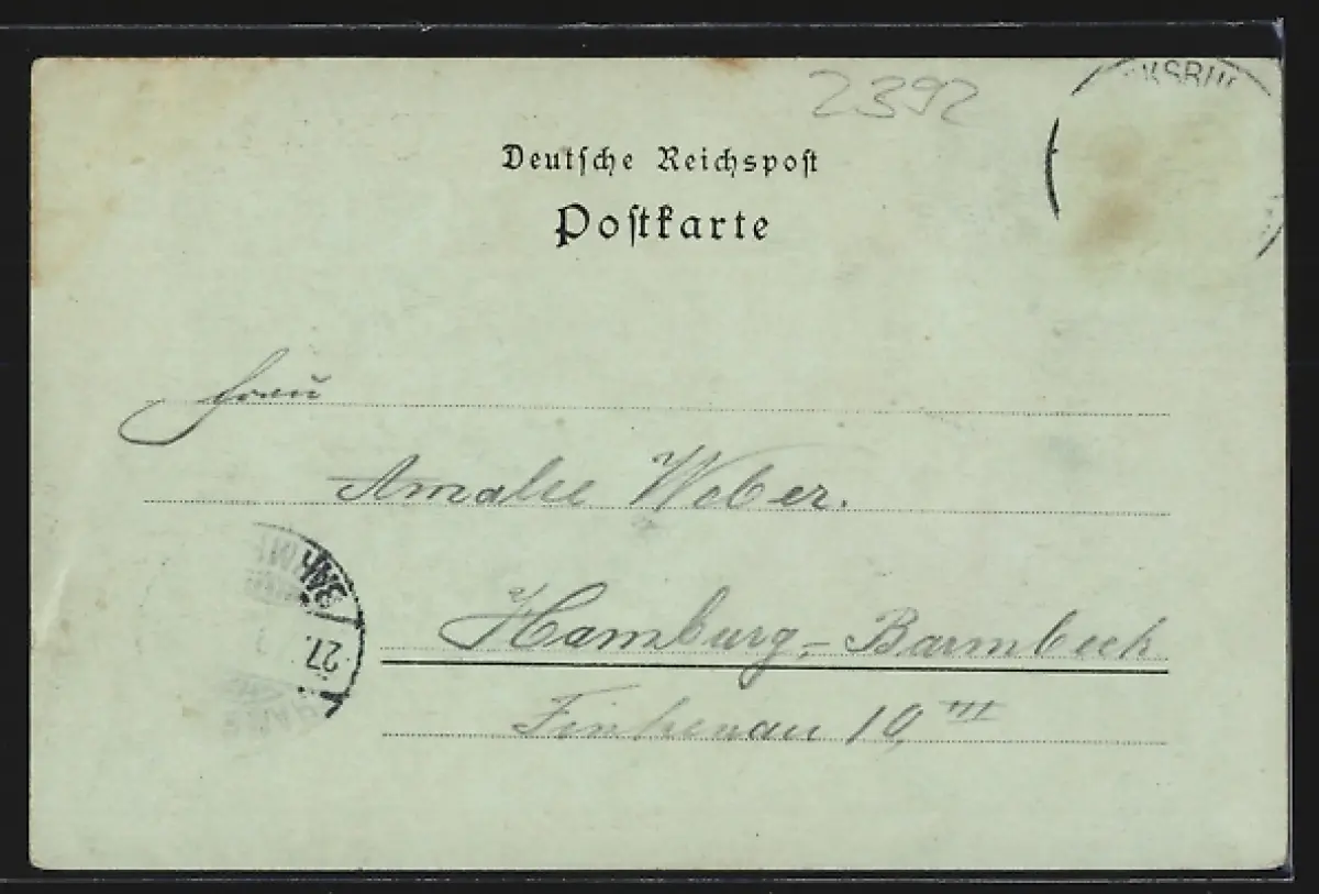 alte Ansichtskarte, gelaufen 1898, Briefmarke entfernt, guter Zustand