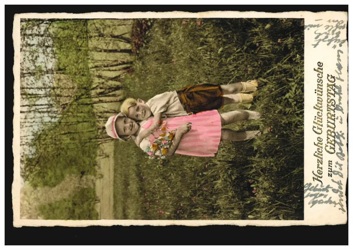 AK Glückwünsche Geburtstag Kinder umarmen sich, DÜSSELDORF um 1938