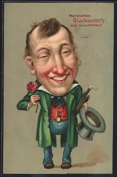 AK Glückwunsch zum Geburtstag, Lustiger Kerl mit grossem Kopf