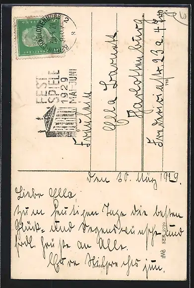 alte Ansichtskarte, gelaufen 1929, guter Zustand